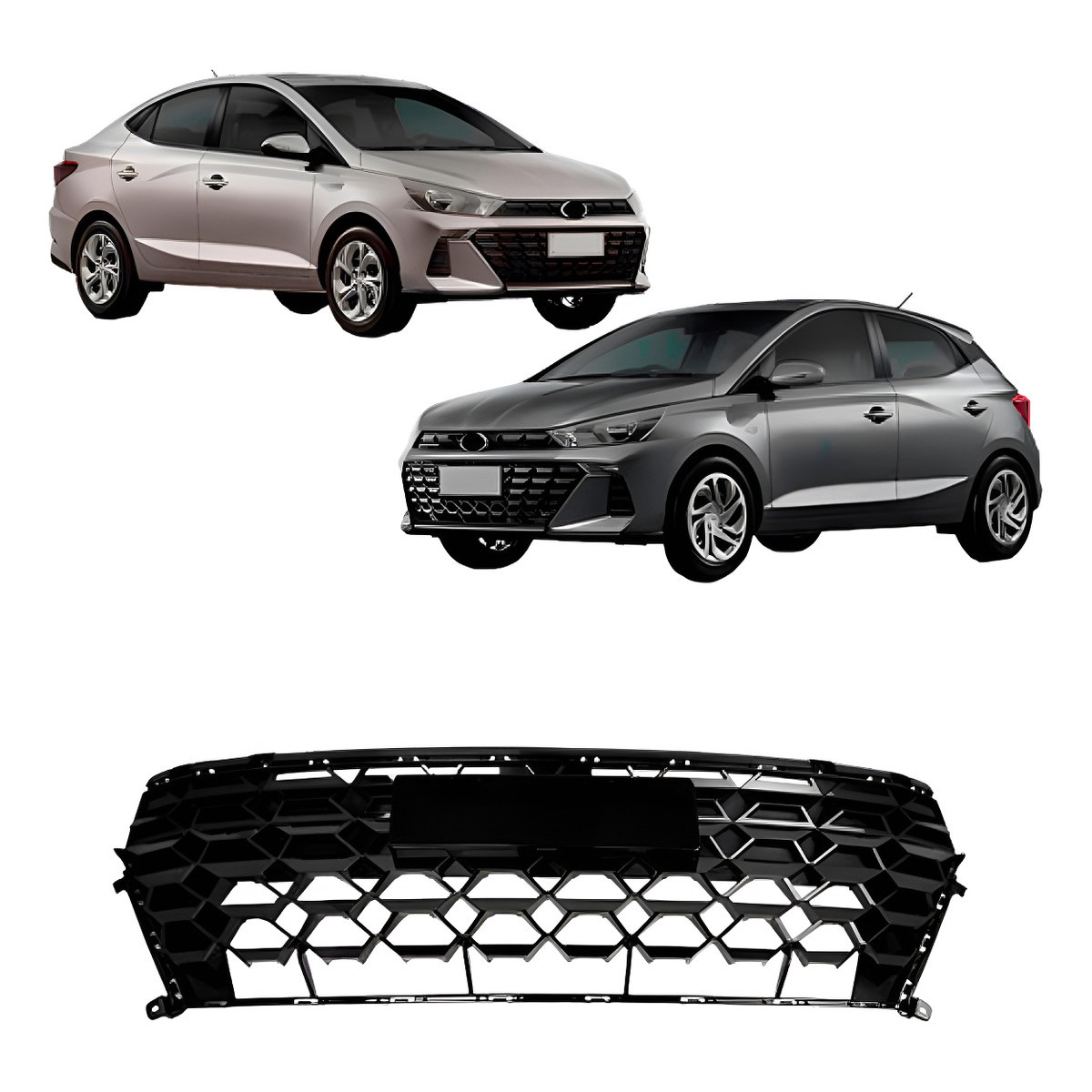 Grade Central Hb20 2023 2024 Dianteira Preta Brilhante