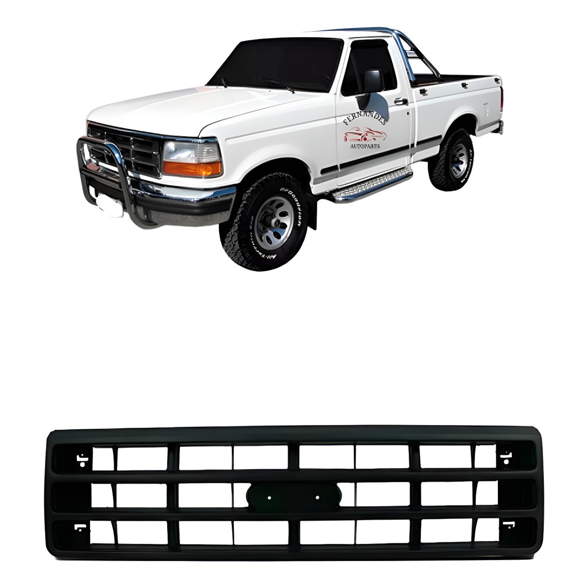 CARACTERÍSTICAS: Produto novo de ótima qualidade Fabricado em plástico resistente ESPECIFICAÇÃO TÉCNICA: Grade Frontal Cor Preto Não Acompanha Emblema* COMPATÍVEL COM OS MODELOS: F1000 1993 F1000 1994 F1000 1995 F1000 1996 IMPORTANTE: Não nos responsabilizamos por instalação mal realizada A instalação deve ser feita por um profissional especializado