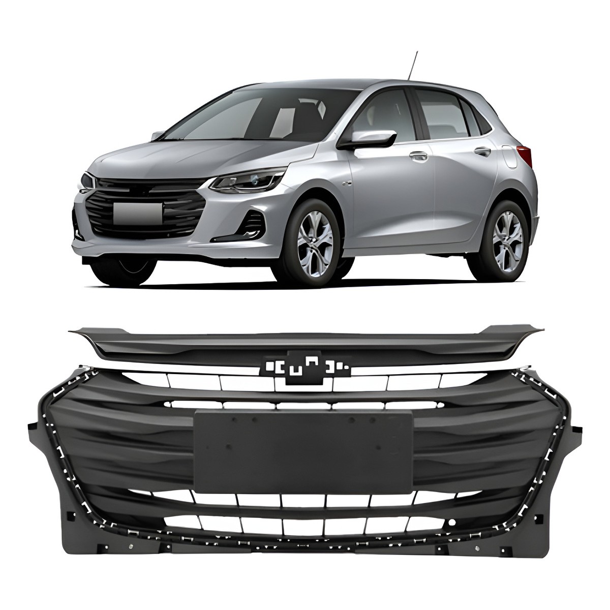 Grade Radiador Onix 2020 A 2022 Com Furo Para Friso - Preto