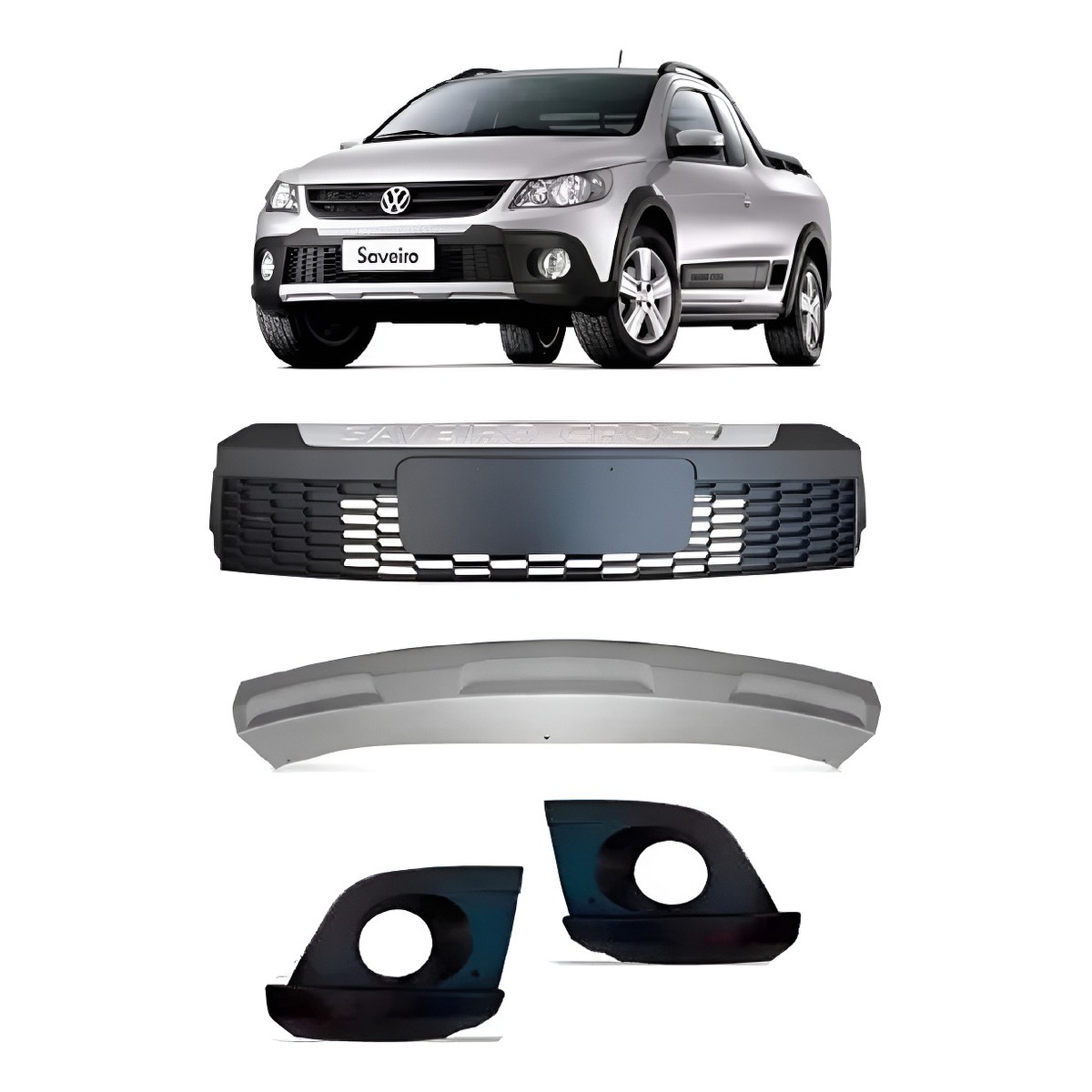 Kit Saveiro Cross G5 Grade Central + Par Molduras + Spoiler Fosco