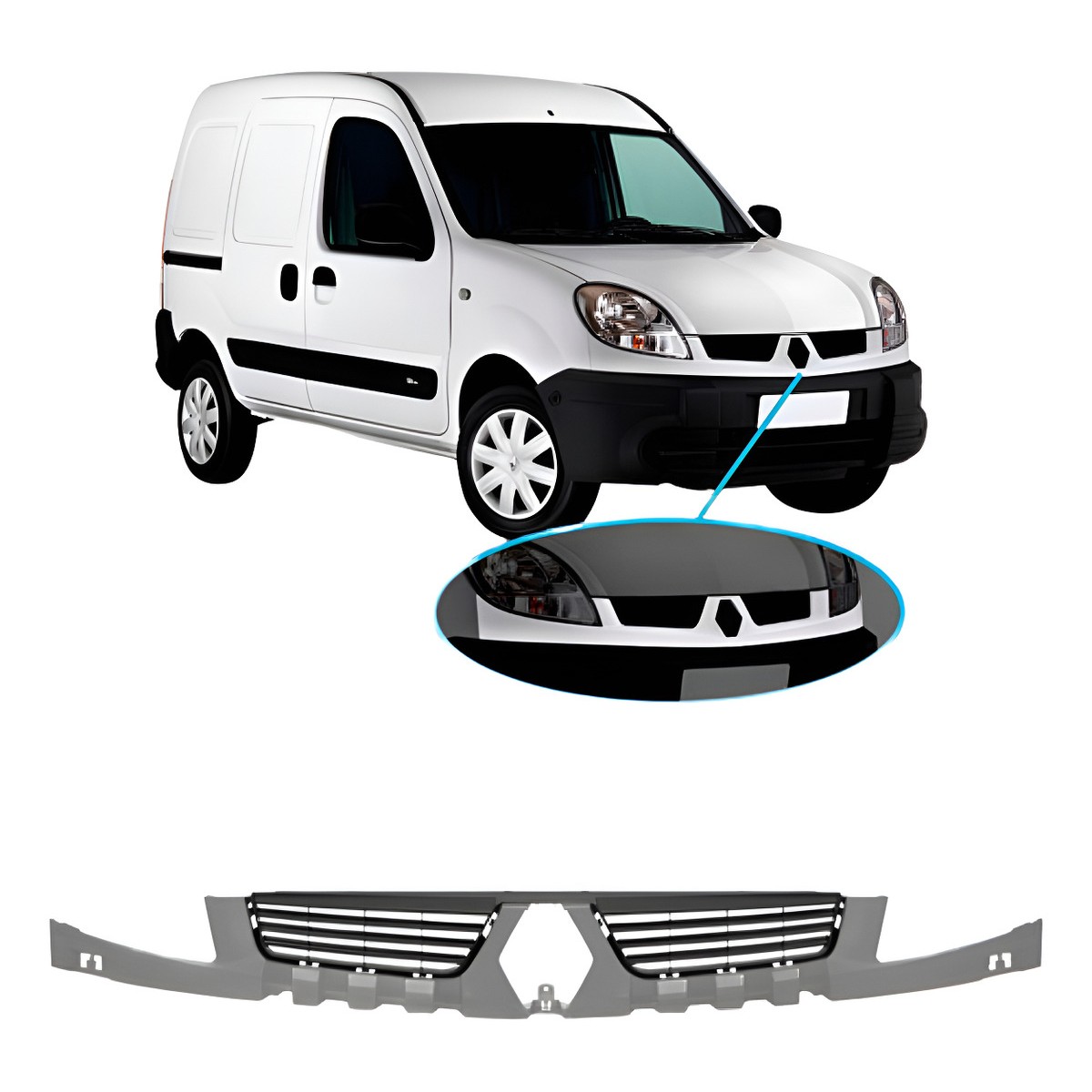 CARACTERÍSTICAS: Produto Novo de Ótima Qualidade Fabricado em Plástico Resistente ESPECIFICAÇÕES TÉCNICAS: Cor Primer Grade Central Não Acompanha Emblema Pode ser Pintado na Cor do seu Veículo COMPATÍVEL COM OS MODELOS: Kangoo 2008 Kangoo 2009 Kangoo 2010 Kangoo 2011 Kangoo 2012 IMPORTANTE: Não nos responsabilizamos por instalação mal realizada A instalação deve ser feita por um profissional especializado