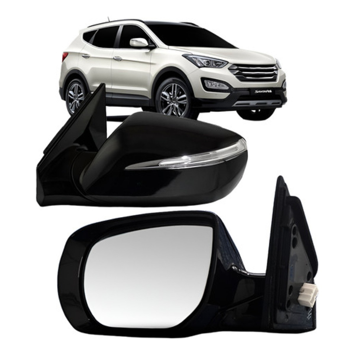 Características: Produto Novo de Ótima Qualidade; Fabricado em Plástico Resistente; Lente na Cor Prata; Especificações Técnicas: Regulagem Elétrica; Retrátil; Com Pisca; Disponivel: Lado direito (Passageiro) Lado esquerdo (Motorista) Valor unitário, verifique a variação de lados; Compatível com os Modelos: Santa Fe 2014; Santa Fe 2015; Santa Fe 2016; Santa Fe 2017; Santa Fe 2018; IMPORTANTE: Não nos responsabilizamos por instalação mal realizada A instalação deve ser feita por um profissional especializado
