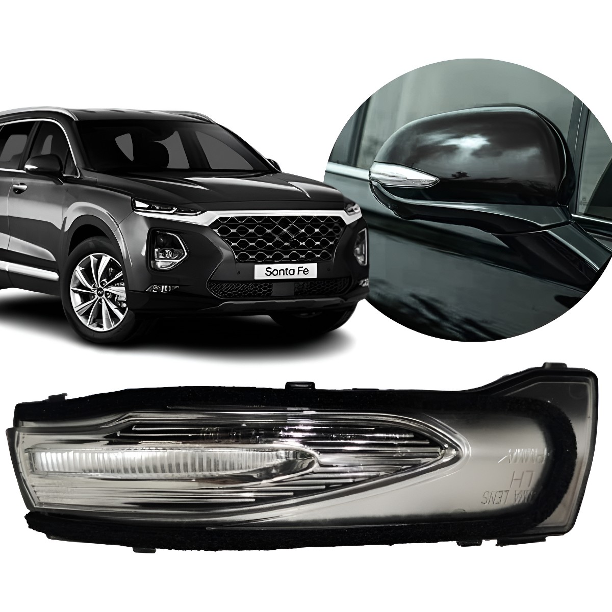 Seta Pisca Retrovisor Santa Fé 2019 A 2020 Lado Direito Direito/passageiro Preto Direito/passageiro